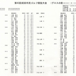 第43回成田市民ゴルフ競技大会 グロスの部 成績一覧 2025年09月06日 成田市アマチュアゴルフ協会より大会の結果報告です!令和7年9月1日(月) 白鳳カントリー倶楽部において、第43回成田市民ゴルフ競技大会が 開催されました。 グロスの部 成績はこちら↓ ... もっと読む